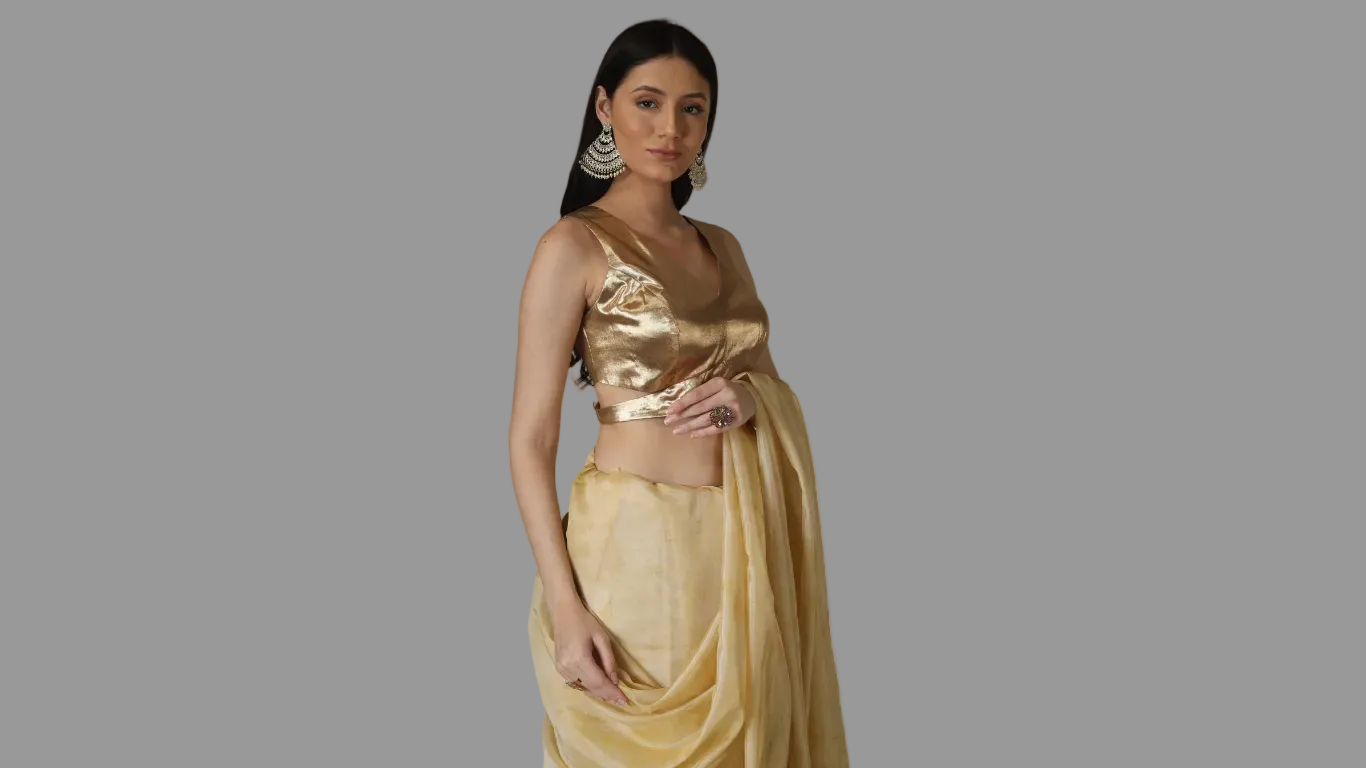 Golden Cream and Royal Purple Border Zari Chiffon Silk Saree with Unstitched Blouse